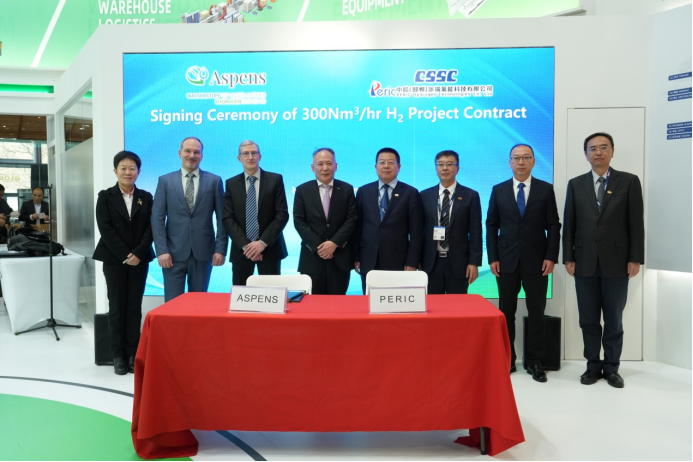 展會期間,中船集團舉辦了電解水制氫設(shè)備、超高溫大型工業(yè)熱泵、智能裝備解決方案等30余場專題推介會,發(fā)布了全球單體最大3000立方電解水制氫設(shè)備,與德國、瑞典兩家客戶簽約電解水制氫項目合作協(xié)議,與全球眾多客戶進行了技術(shù)與產(chǎn)品交流,深入推進國際市場營銷,進一步提升了中船集團新興產(chǎn)業(yè)的國際影響力。此外,中船集團還組織相關(guān)成員單位赴德國、法國等地,與林德、德希尼布和施耐德等全球知名跨國企業(yè)進行了推介交流與合作洽談,進一步鞏固合作關(guān)系,為后續(xù)深化合作奠定基礎(chǔ)。同時,組織與中國國機集團、國家能源集團等中國企業(yè),就展覽展會、品牌宣傳、國際項目合作等方面進行交流,攜手拓展國際市場。