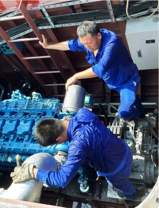 在悶熱且狹小的機(jī)艙內(nèi),一個簡單的動作,難度系數(shù)都要成倍增加,考驗(yàn)的不僅是船舶電工的體力,還有毅力。