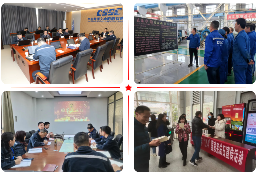今年12月4日是第八個(gè)國(guó)家憲法日,11月29日~12月5日是第四個(gè)“憲法宣傳周”。中國(guó)船舶集團(tuán)總部和各成員單位以本次國(guó)家憲法日和“憲法宣傳周”為契機(jī),深入開展了2021年“法治宣傳周”活動(dòng),在集團(tuán)上下掀起了尊法學(xué)法守法用法的熱潮,營(yíng)造了濃厚的法治氛圍。