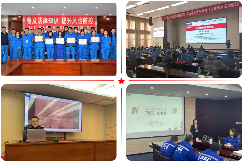 ▲ 江南造船、中船九院、重齒公司、河柴重工、江淮重工、七〇八所、七〇九所、七一六所等單位通過線上與線下相結(jié)合的方式開展法律知識(shí)競(jìng)賽;七一七所、七二二所等單位拍攝制作普法微視頻;中船澄西、中船財(cái)務(wù)、中船投資、物資公司、各平臺(tái)型上市公司、中船綠洲、中船風(fēng)電、漢光重工、長(zhǎng)江科技、七一〇所、七一一所、上船院等多家單位舉辦專題法治講座;七六〇所舉辦民法典熱點(diǎn)問題交流沙龍;八院組織業(yè)務(wù)部門重點(diǎn)崗位人員旁聽庭審。