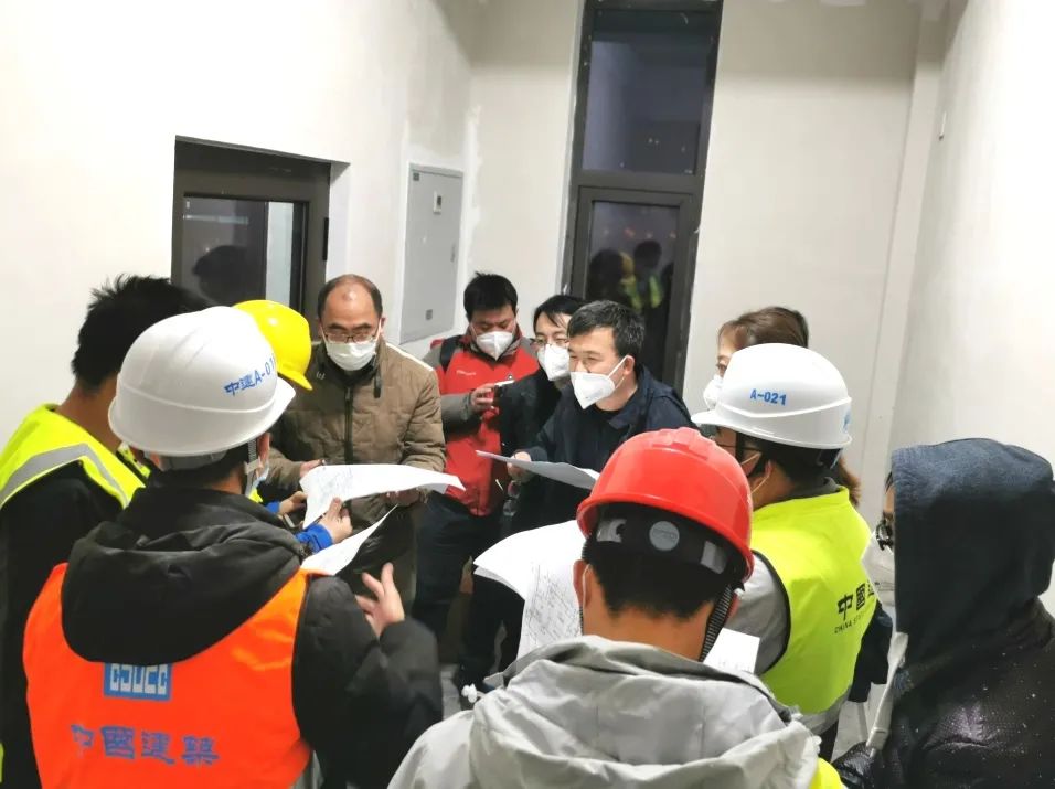 中船九院公司領導帶領項目團隊連續多日通宵在現場工作,及時協調工地各種情況,與集團公司相關部門并肩作戰、及時溝通,提高工作效能;同時堅持實時優化設計,協調工程建設。項目設計負責人、中船九院副總建筑師王川第一時間組織團隊明確職責分工,確定了現場設計、后方設計、現場管理、外場支持等多專業協同配合機制,確保多條線同時作戰、運作高效??偣こ處燑S延驅車前往長興島專送工程保障設備,長興島實行“只進不出”,他就直接加入現場設計團隊,10天沒有下島。設計團隊中三位女設計師沈清清、胡雁、沈峻,更是巾幗不讓須眉,創造性地解決了暖風系統設計等一系列難題,堅守一線直到項目最終交付。項目管理團隊的戴鳳波、徐詠春、欒海林、王后軍、屈杰、倪冬輝等人把現場當作家,3天只在賓館住了3個小時,其余時間都在車上、辦公桌上度過。項目部顧建章、汪凱則協調運輸通行資源,解決了建設期間工程人員的基本飲食問題。與此同時,還有更多的人在后方作戰斗支撐,中船九院建筑一院院長曾志堅迅速組織本部設計團隊,緊急將居家辦公的相關專業骨干召回,組成了包括張瓊、瞿駸、郭鳳群、李嘯、蔣斌等18名骨干在內,建筑、結構、水、電、風、經濟各專業齊全的團隊。之后因項目需要,胡雁、瞿革、瞿駸上島加入現場設計團隊。