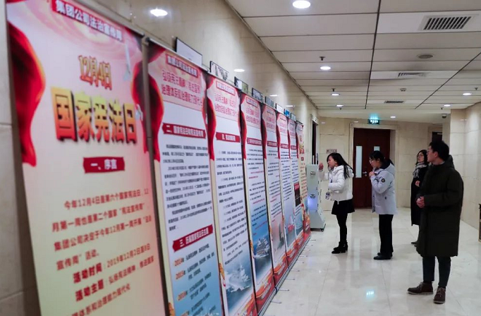 12月2日,集團公司制作的“法治宣傳周”活動展板開始在總部進行展示,展板對國家憲法日、國家憲法宣傳周、歷屆憲法日主題、憲法發展歷程等進行了介紹,節選了習近平總書記近年來關于法治的部分講話與文章,并對集團公司成立前兩大船舶集團的法律工作進行了回顧,拉開了集團公司“法治宣傳周”的帷幕。