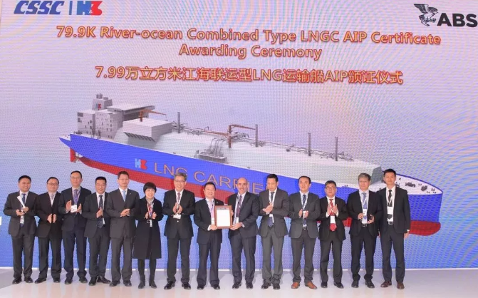 ????中國(guó)船舶集團(tuán)所屬滬東中華造船(集團(tuán))有限公司推出了包括LNG-FSRU船、ARC7破冰型LNG船、350MV LNG發(fā)電船、V2.0版18600立方米LNG加注船在內(nèi)的6款新船為中國(guó)船舶集團(tuán)代言。12月4日,滬東中華獲得了由美國(guó)船級(jí)社頒發(fā)的全球首例7.99萬立方米江海聯(lián)運(yùn)型LNG船AiP證書、由DNV GL船級(jí)社頒發(fā)的全球最大25000TEU集裝箱船AiP證書。