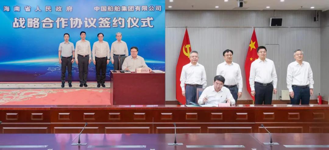 8月11日,中國(guó)船舶集團(tuán)有限公司與海南省政府通過(guò)“云簽約”方式簽署戰(zhàn)略合作協(xié)議,共同見(jiàn)證雙方長(zhǎng)期合作結(jié)出的又一碩果。中國(guó)船舶集團(tuán)黨組書(shū)記、董事長(zhǎng)雷凡培,黨組副書(shū)記、總經(jīng)理?xiàng)罱鸪桑h組成員、副總經(jīng)理錢(qián)建平、杜剛、盛紀(jì)綱,海南省委書(shū)記沈曉明,省委副書(shū)記、省長(zhǎng)馮飛,省委常委、省委秘書(shū)長(zhǎng)孫大海,省委常委、三亞市委書(shū)記周紅波,副省長(zhǎng)王路出席儀式。錢(qián)建平和王路分別代表雙方在協(xié)議上簽字。簽約前,雙方圍繞共同服務(wù)國(guó)家戰(zhàn)略、深化戰(zhàn)略合作進(jìn)行了交流。