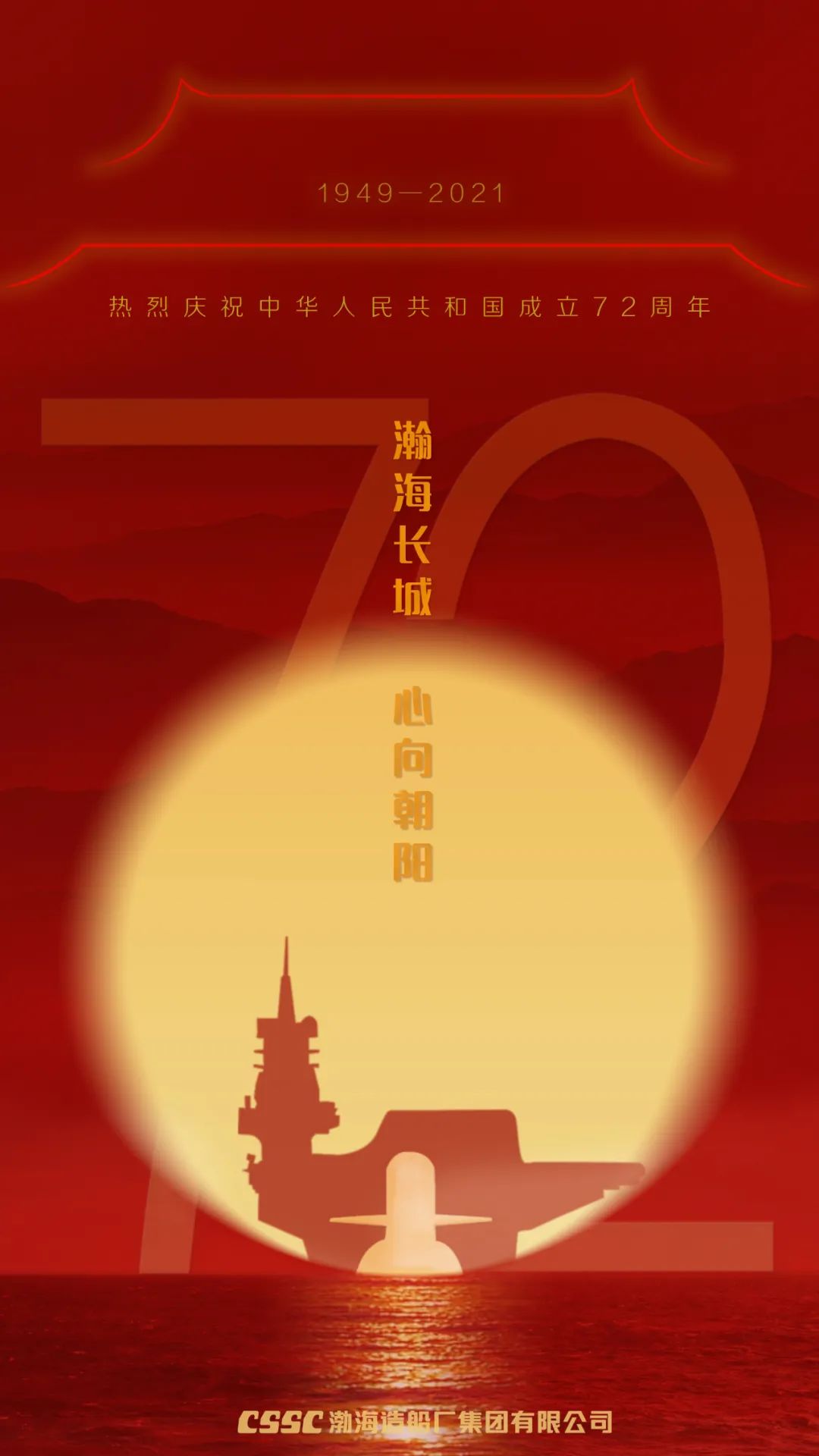 一輪紅日從國之滄海升起,捍衛萬里海疆的海上長城深海逐浪,其后盾是強大的祖國母親,中國船舶渤船集團祝新中國七十二歲生日快樂!強軍有我,強國有我!