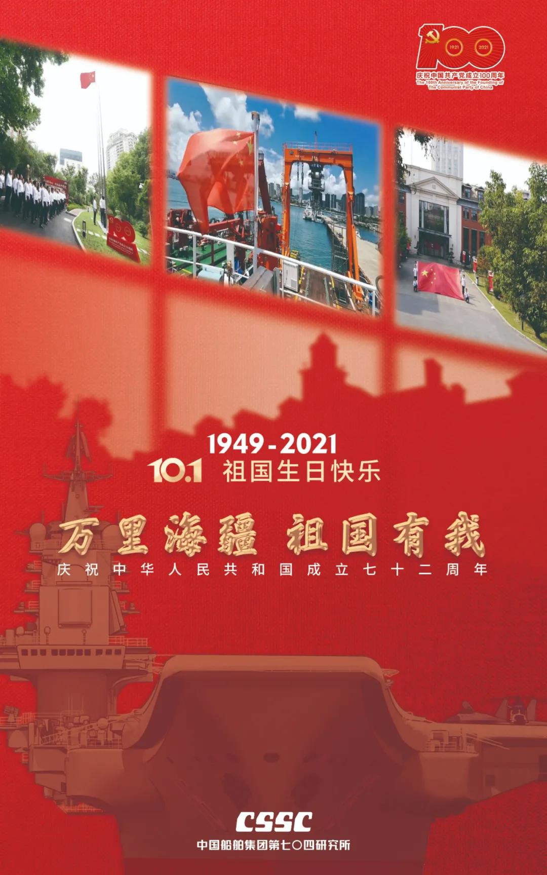 欣望江山千里秀,歡送祖國萬年春,中國船舶七〇九所祝福新中國72歲生日快樂,“中國號”巨輪劈波斬浪再創新輝煌!
