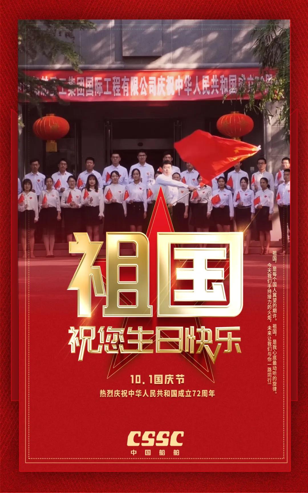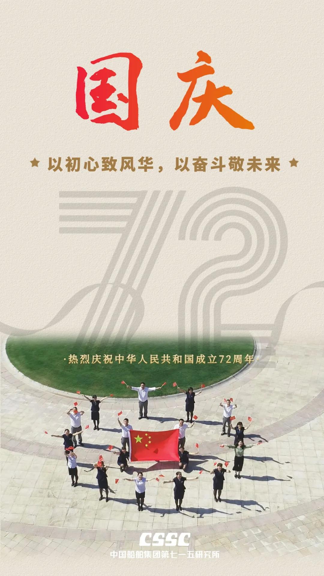 祖國,是每個國人冀望的期許!祖國,是船舶人心底最動聽的旋律!72年來,新中國經歷了風風雨雨;72年過去,成就了盛世風華,中國船舶六〇二院全體員工祝新中國生日快樂!