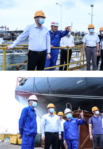 9月22日,中國船舶集團有限公司黨組副書記、總經(jīng)理楊金成到集團公司旗下江南造船、滬東中華調(diào)研指導工作。楊金成聽取了江南造船、滬東中華近期安全生產(chǎn)、疫情防控、保密保衛(wèi)、信訪維穩(wěn)等工作及生產(chǎn)經(jīng)營情況的匯報,并登上兩家企業(yè)船塢碼頭查看了重點在建船舶進展情況。
