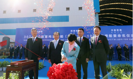 9月24日,中國船舶集團旗下大船集團聯合中船貿易為招商局集團旗下招商輪船建造的30萬噸VLCC “新伊敦”輪正式命名交付。同日,大船集團聯合中船貿易成功承接了招商輪船2艘17.5萬立方米大型LNG運輸船新造項目。中國船舶集團黨組副書記、總經理楊金成,黨組成員、副總經理孫偉,招商局集團黨委書記、董事長繆建民,黨委副書記、總經理胡建華,紀委書記、董事段湘暉,黨委委員、副總經理李百安出席儀式。繆建民為新船命名,楊金成、胡建華在儀式上致辭,段湘暉為新船砍纜。