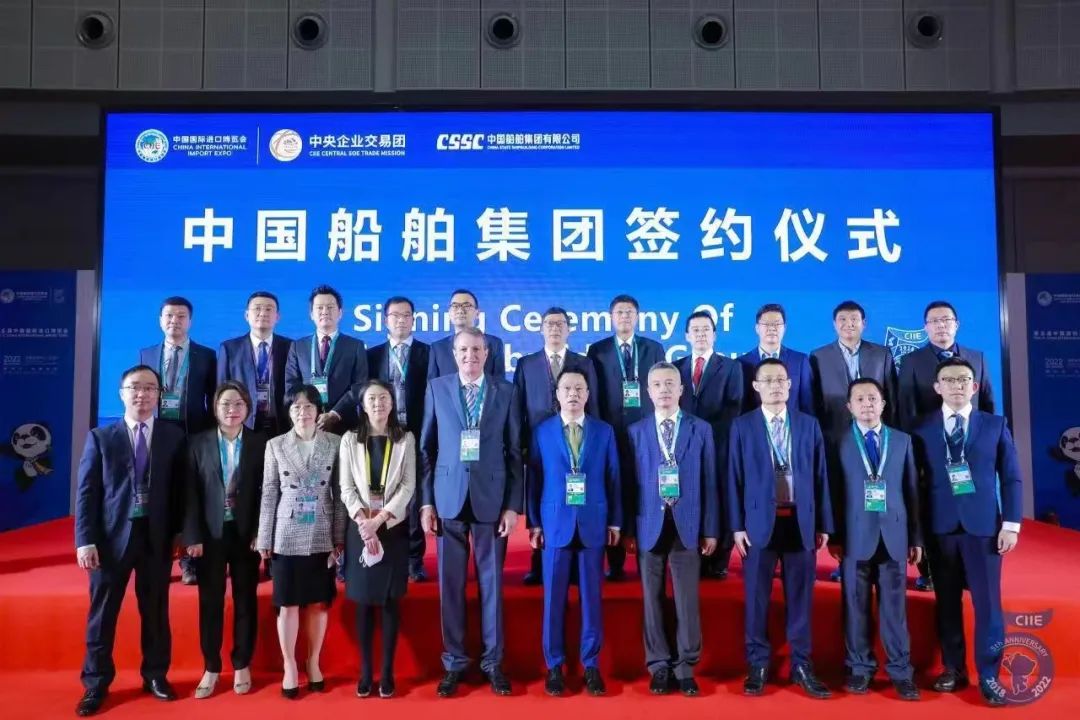 第五屆進博會期間,中國船舶集團旗下8家企業與18家國際合作伙伴先后進行21個項目的集中簽約,累計總金額達4.5億美元,同比增長205.5%。項目涉及柴油機組、發電機組、船用吊機、通導系統、電力推進系統、數字化網絡設備、LNG供氣系統、殷瓦鋼、再液化裝置等船舶建造領域的各類重要配套設備,為國際交易市場和全球供應鏈的日益繁榮貢獻中國船舶力量。
