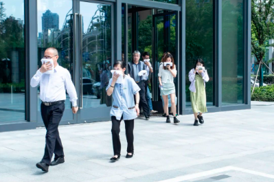 本次演練模擬總部1#樓電梯間、2#7層會(huì)議室發(fā)生火災(zāi),物業(yè)人員先后用滅火器、樓層消防水系統(tǒng)實(shí)施初期火災(zāi)撲救,火勢(shì)無(wú)法控制后立即拉響疏散警報(bào),同時(shí)向最近的消防站請(qǐng)求支援。全體人員按照疏散路線緊急有序完成了疏散。