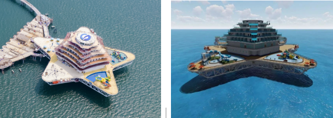 以濱海城市為依托,該方案重點建設需求旺盛、基礎好、見效快的“海洋文旅+深海養殖+海上風電+海洋信息管網”4個要素單元,釋放旅游、養殖、綠色能源耦合效應。綜合體采用模塊化設計、區域化協同部署,由濱海向深遠海帶狀輻射,布局建設游輪游艇群、養殖文旅平臺、深海養殖產業園、分布式海上風電場及智能微電網、深海移動養殖工廠和海洋信息管網等風漁文旅結合項目。以郵輪游艇連接海上設施,構建海上旅游娛樂交通網,以中小型郵輪航線實現沿海城市綜合體間串聯,構建沿海城市海上旅游觀光帶,同時培育郵輪與康養休閑岸?;尤诤夏J?,捕捉、帶動、滿足多元化潛在消費需求,打造風漁文旅等一二三產業融合新業態,形成沿海藍色海洋經濟帶。