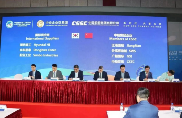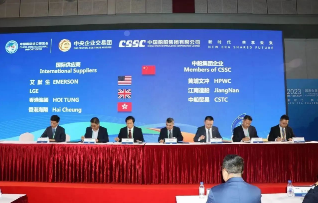 簽約儀式上,中國船舶集團旗下7家成員單位與來自9個國家和地區的17家國際合作伙伴進行了20個項目的集中簽約,累計總金額達4.82億美元,同比增長18%。具體看,交易產品涵蓋主機、再液化裝置、滾裝設備、液化天然氣(LNG)供氣系統、液貨系統等船舶建造領域的各類重要配套設備。這些簽約將有效推動國際國內市場融合互鑒,為國際船舶交易市場的日益繁榮貢獻中國船舶力量。