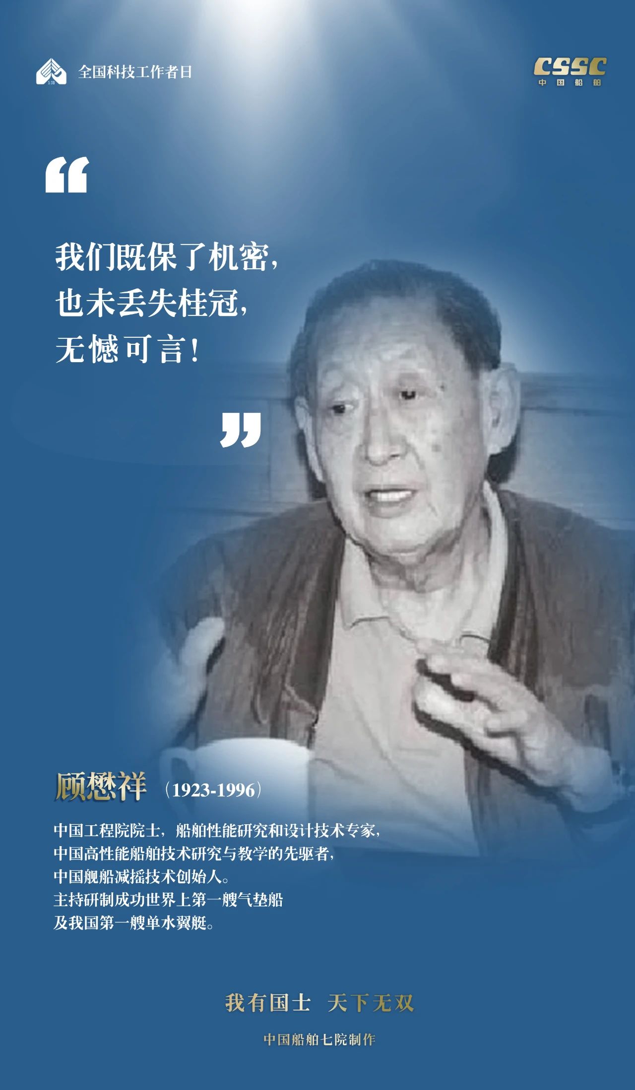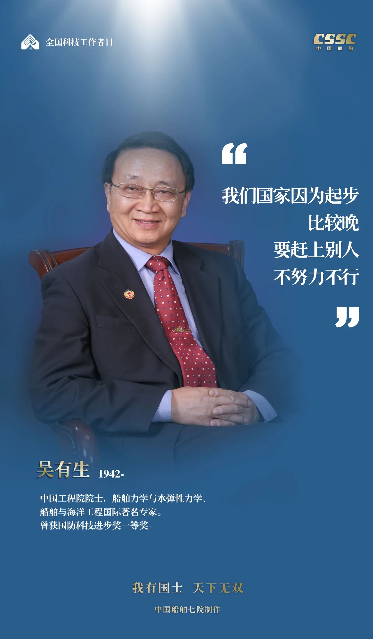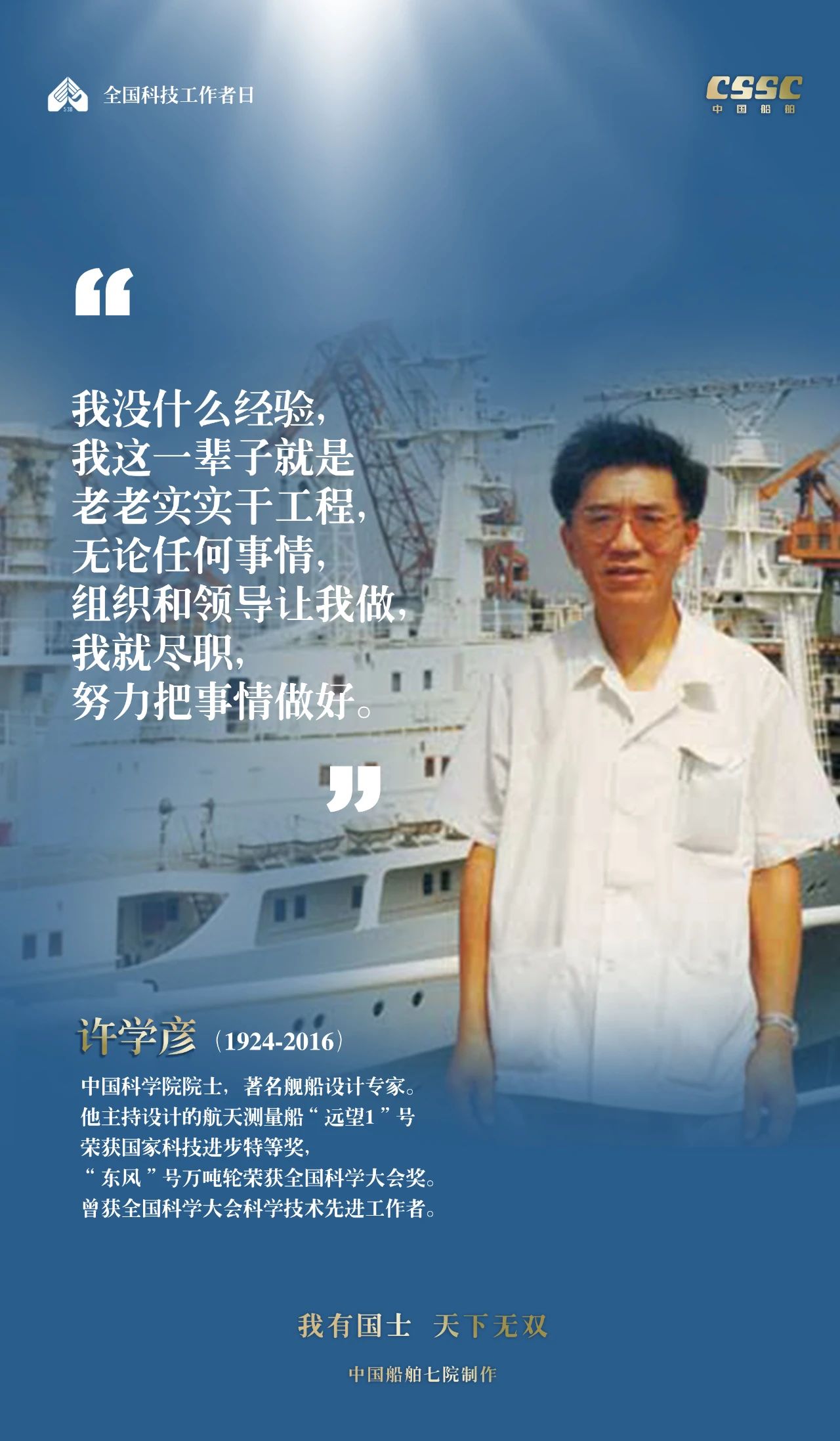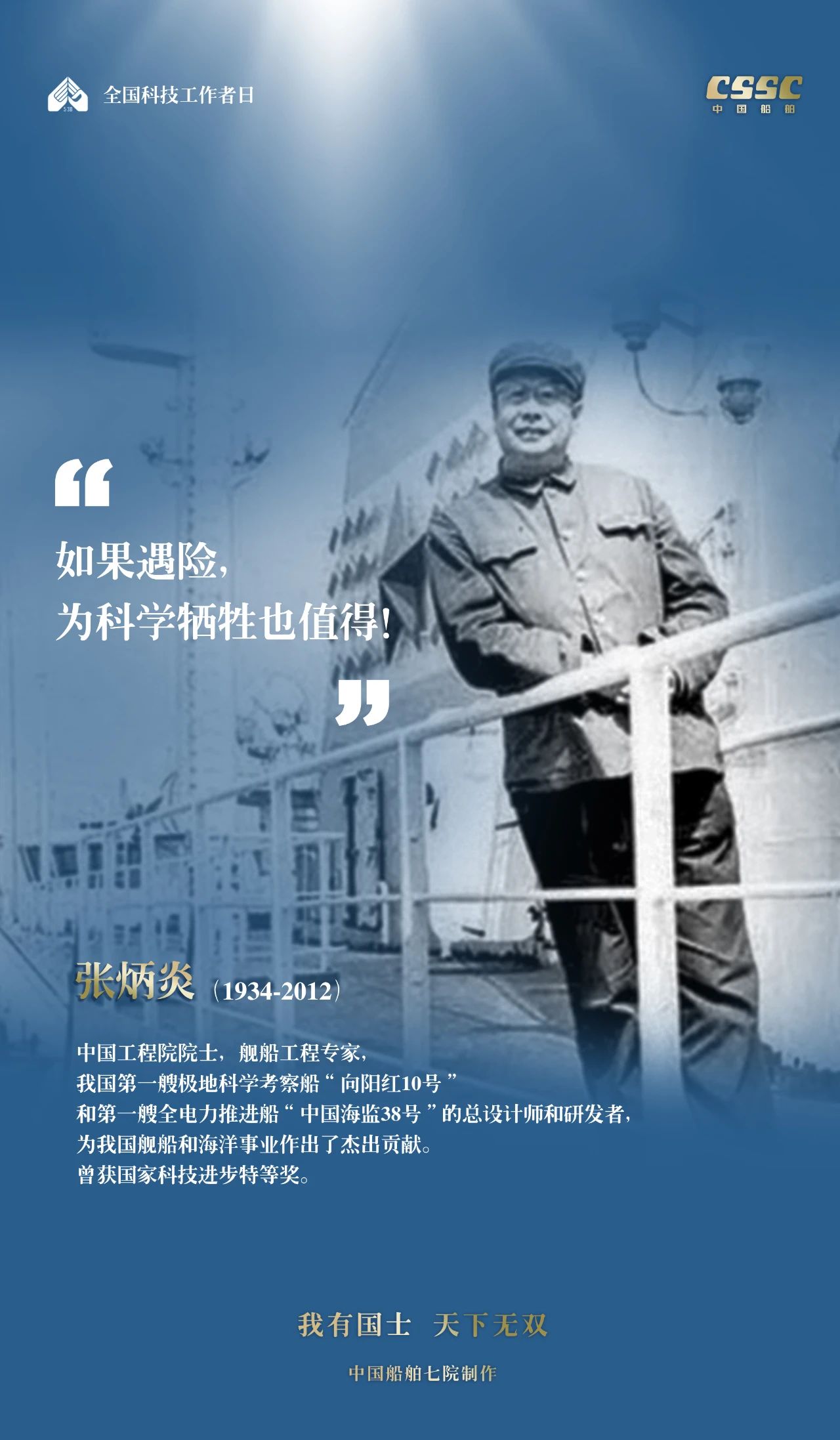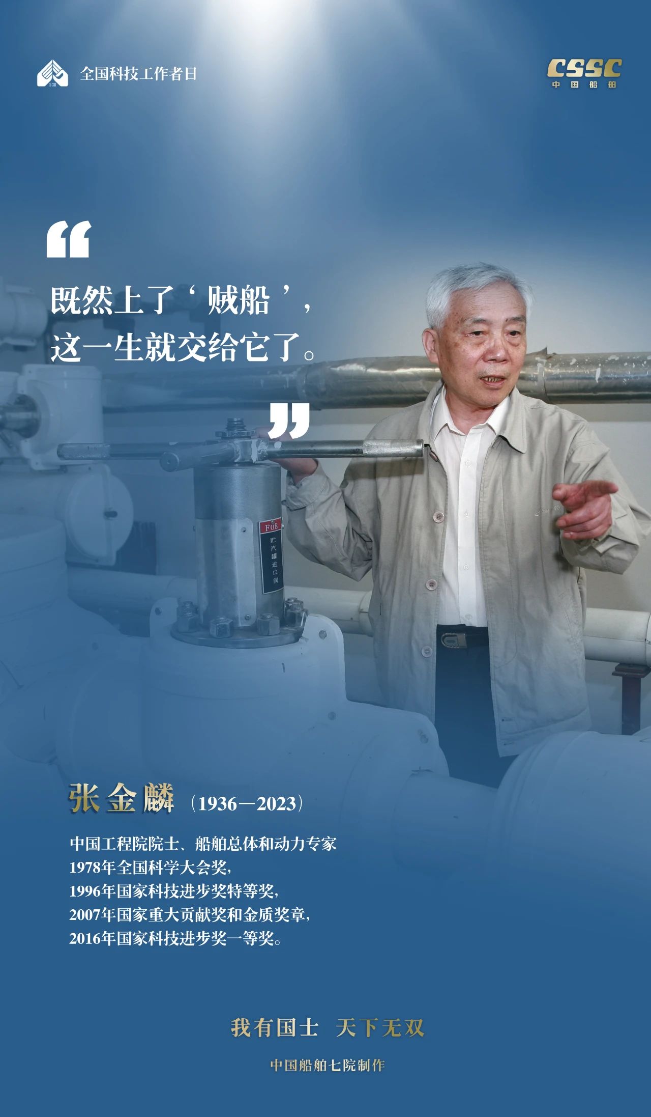 2024年5月30日,是第八個“全國科技工作者日”,一代代中國船舶人胸懷國之大者,無怨無悔勇攀科技高峰。他們的事跡也許無人知曉,他們的智慧卻是科學火種,他們用精神點亮希望之光,他們用勇氣探尋未來之路,他們有個共同的名字中國船舶科技工作者。