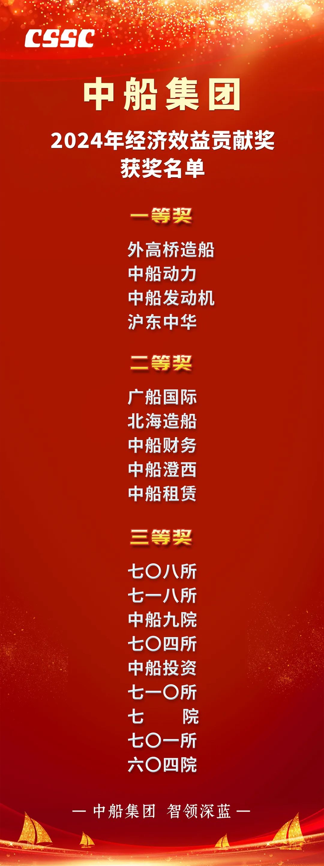 2024年,面對復(fù)雜多變的外部環(huán)境和不確定因素,中國船舶集團(tuán)有限公司各二級管理單位著力拓市場、強(qiáng)管理、抓改革、增效益,實(shí)現(xiàn)了量的合理增長、質(zhì)的有效提升,整體經(jīng)濟(jì)效益再創(chuàng)新高。為樹立典范,表彰先進(jìn),經(jīng)中船集團(tuán)黨組研究,決定授予外高橋造船等18家單位2024年中船集團(tuán)經(jīng)濟(jì)效益貢獻(xiàn)獎(jiǎng)。