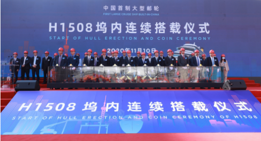 大型郵輪工程是中國(guó)船舶集團(tuán)貫徹習(xí)近平總書記重要指示精神、落實(shí)國(guó)家戰(zhàn)略、滿足人民美好生活需要的重大舉措,也是中國(guó)船舶集團(tuán)強(qiáng)化科技創(chuàng)新、促進(jìn)轉(zhuǎn)型升級(jí)、推動(dòng)高質(zhì)量發(fā)展的一號(hào)工程。2018年11月6日,中國(guó)船舶集團(tuán)與美國(guó)嘉年華集團(tuán)、意大利芬坎蒂尼集團(tuán)在首屆中國(guó)國(guó)際進(jìn)口博覽會(huì)上正式簽訂2+4艘13.5萬(wàn)總噸Vista級(jí)大型郵輪建造合同,并舉行了中國(guó)船舶集團(tuán)大型郵輪項(xiàng)目工程正式啟動(dòng)儀式。這是我國(guó)首次簽訂真正意義上的大型郵輪建造合同,開啟了中國(guó)船舶工業(yè)建造大型郵輪的新時(shí)代。2019年10月18日,中國(guó)首制大型郵輪在外高橋造船正式開工點(diǎn)火進(jìn)行鋼板切割,全面進(jìn)入實(shí)質(zhì)性建造階段。一年多來,在中國(guó)船舶集團(tuán)的堅(jiān)強(qiáng)領(lǐng)導(dǎo)下,在中船郵輪科技發(fā)展有限公司、中船第九設(shè)計(jì)研究院工程有限公司、上海船舶工藝研究所等兄弟單位的大力支持下,外高橋造船經(jīng)受住了新冠肺炎疫情的洗禮和考驗(yàn),克服了物資采購(gòu)、薄板車間流水線建設(shè)滯后等一系列困難,一步一個(gè)腳印,如期實(shí)現(xiàn)了塢內(nèi)連續(xù)搭載總裝的里程碑節(jié)點(diǎn)。