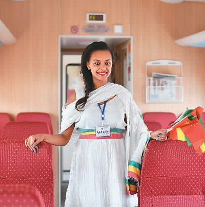 2016年10月5日,在埃塞俄比亞首都亞的斯亞貝巴,一名當地人試乘亞吉鐵路通車當日的第一列旅客列車。新華社記者 孫瑞博攝