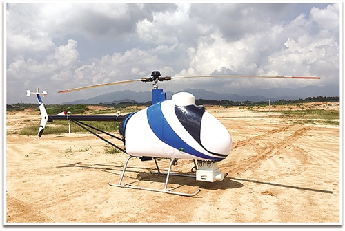 圖為南方電網(wǎng)廣東電力科學(xué)研究院自主研發(fā)的巡線無人直升機。(張建軍 攝)