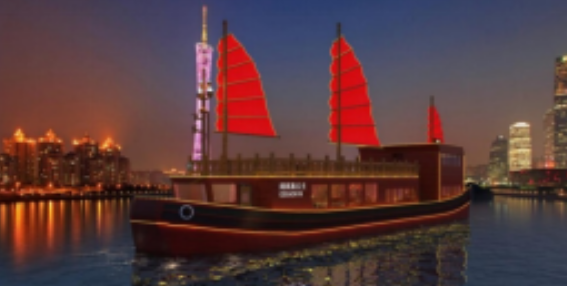 ????160客位純電動客船“闊闊真公主號”總長36米,型寬8米,型深3米。該船是仿七百多年前元朝闊闊真公主遠嫁波斯時乘坐的古船建造而成,有“福船送?!钡脑⒁?。建造后將行走于珠江,夜游展示亞洲文化交流的傳奇。