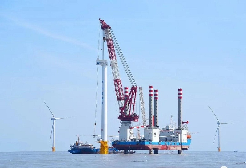????本次安裝難度大,30號(hào)風(fēng)機(jī)單葉片長(zhǎng)73.5米,旋轉(zhuǎn)直徑達(dá)158米,輪轂高度81米。塔筒共分為底、中、頂三段,風(fēng)機(jī)整體總重量790噸以上,相當(dāng)于500余輛小汽車的重量。“振江號(hào)”平臺(tái)安裝3臺(tái)1800千瓦電力推進(jìn)全回轉(zhuǎn)舵槳,配備3臺(tái)750千瓦艏側(cè)推裝置。航速7節(jié),續(xù)航能力達(dá)3000海里,定員100人,平臺(tái)最大作業(yè)水深50米,甲板作業(yè)面積約2500平方米,可容納3套6兆瓦級(jí)風(fēng)機(jī)或2套8兆瓦級(jí)風(fēng)機(jī),并且可以獨(dú)立完成6兆瓦、8兆瓦級(jí)風(fēng)機(jī)的安裝和其他水上工程施工的起重、打樁、吊裝和運(yùn)輸?shù)茸鳂I(yè)。
