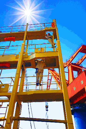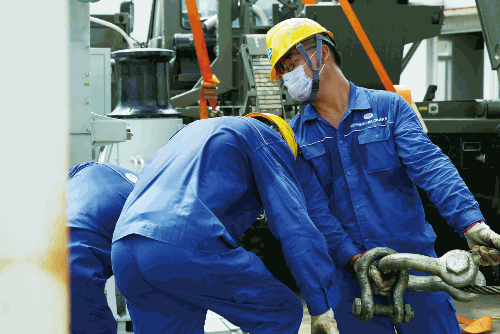 面對生產任務重、資源需求大的狀況,中船澄西廣大干部克服高溫“烤”驗,用速度和汗水高質量完成各項生產任務。