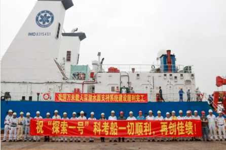 2016年8月12日,“探索一號”在馬里亞納海溝海域執行84項科考任務后返回三亞,在海溝的不同深度斷面上,取得了大批珍貴的樣品和數據,填補了我國長期以來無法獲得超大深度、特別是萬米海底數據和樣品的空白,圓滿完成了我國海洋科技發展史上的第一次萬米級深淵科考任務。