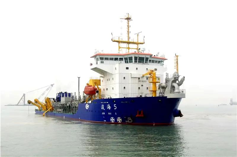 高精度3D水下整平系統被譽為水工領域的“大國重器”,主要負責管節下放前海底碎石基礎鋪設工作,集供料、整平、測量、控制于一體,可在海底基床自動高效進行碎石3D整平作業,7天即可完成近1萬方碎石鋪設任務,其獨創的橫斷面分幅錯縫攤鋪工藝為世界首例,滿足碎石基礎變化需求,碎石整平精度可達±2.5厘米,是中國碎石基礎整平精度最高的船舶整平設備,在國際上也屬于領先水平,被業界形象地稱為深水碎石鋪設的“3D打印機”。