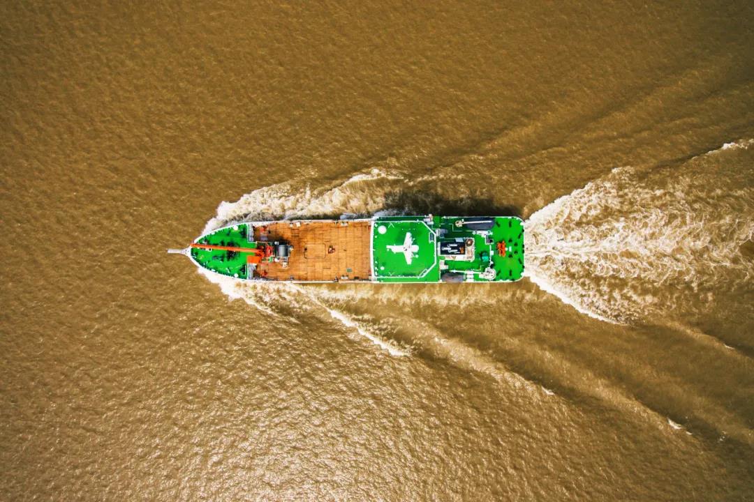 伶仃洋上碧波蕩漾,中??蜐L船2號船一騎絕塵。順利完成試航節點的她宛如運動員沖刺終點的紅飄帶,帶著金秋收獲的喜悅和“大干120天”的沖勁奔赴遠方。
