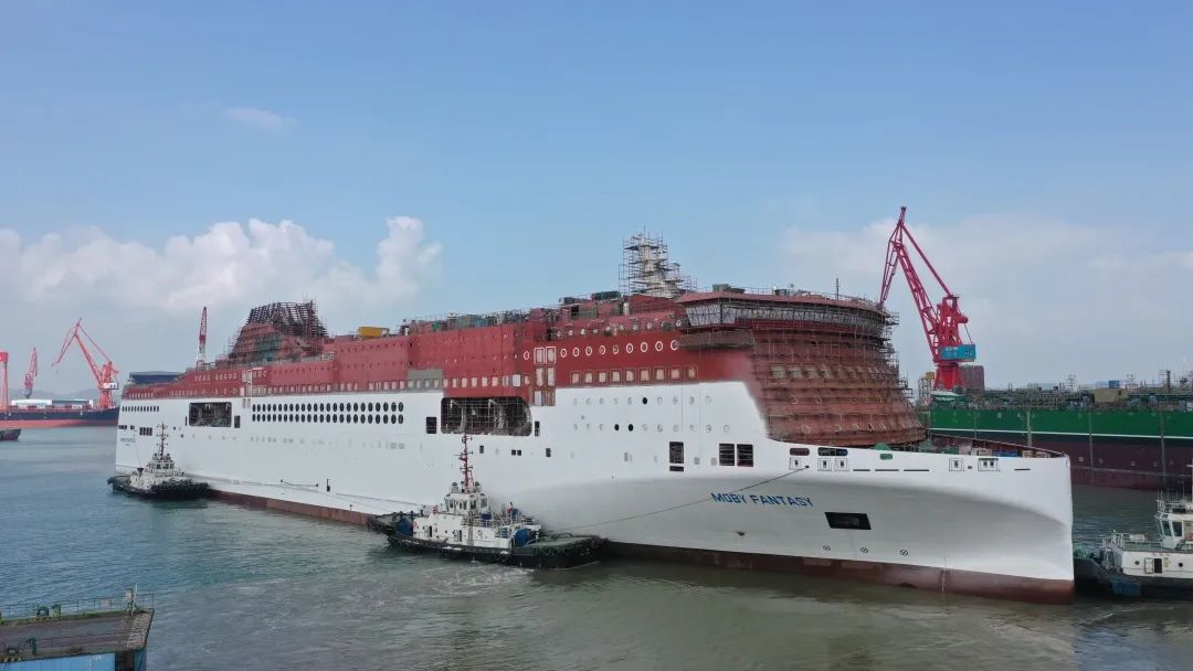 近日,廣船國際為意大利Onorato航運集團旗下Moby Line航運公司建造的2500客/3800米車道豪華客滾船首制船實現出塢,建成交付后將成為全球最大的豪華客滾船。