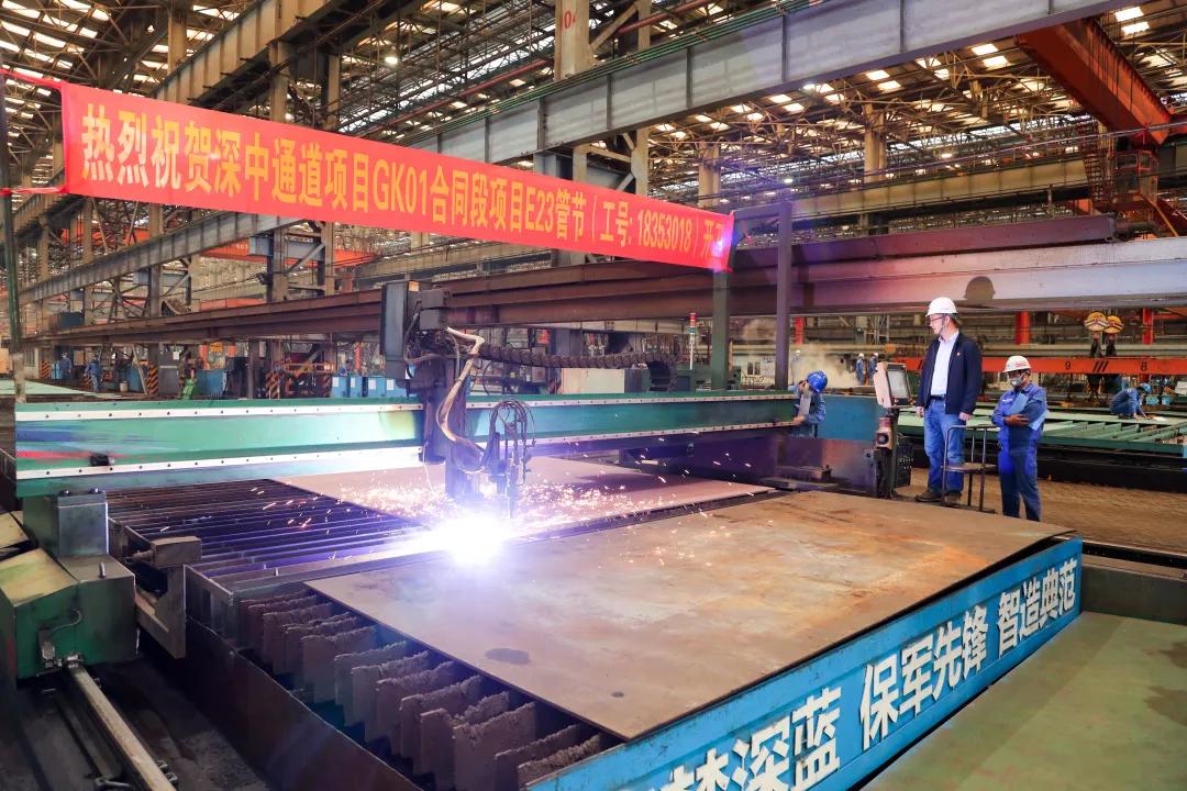 自項目開工以來,廣船國際與黃埔文沖積極推進智能制造技術(shù)應(yīng)用,構(gòu)建了以鋼材智能切割生產(chǎn)線、小組立(片體)智能焊接生產(chǎn)線、中組立(塊體)智能焊接生產(chǎn)線、智能涂裝車間及車間管控系統(tǒng)等為核心的“四線一系統(tǒng)”鋼殼智能制造,助力鋼殼管節(jié)百年品質(zhì)工程打造,助推深中通道工程高質(zhì)量建設(shè)。