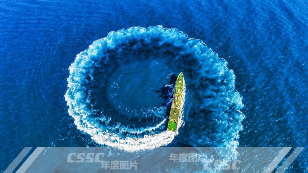 大型航標船“海巡156”號海上試航。回轉試驗時,藍色海面上留下了一個大大的“6”。該船是我國首艘具備破冰能力的大型航標船。