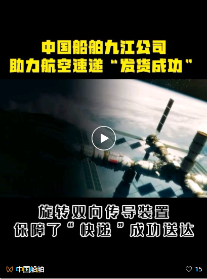 天舟四號貨運飛船是我國空間站建造階段的首發(fā)航天器,其作用是為空間站運輸物資、補給燃料、下行廢棄物,具備并網(wǎng)供電、應(yīng)急通信等能力,確保空間站組合體在軌平穩(wěn)運行。在本次發(fā)射任務(wù)中,中國船舶集團旗下中船九江承擔(dān)旋轉(zhuǎn)雙向傳導(dǎo)裝置的研制工作,保障了“天舟四號”快遞成功送達(dá)。作為空間站建造階段的“首艘船”,承載著中船九江人的智慧與心血。