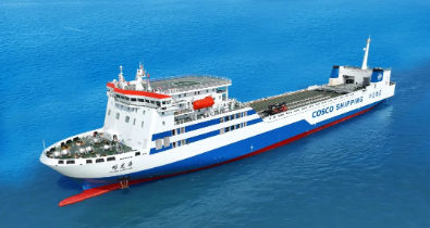 11月11日,由中國船舶集團旗下廣船國際為中遠海運集團旗下中遠海運客運建造的3000米車線多用途貨滾船2號船“暢龍?!碧柡炞纸桓?。