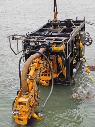 此次試驗的深海多金屬硫化物采礦車長8.2米,寬3.9米,高3.5米,空氣中重量21噸,突破了水下布放回收姿態(tài)自動定向控制、深水大功率液壓驅(qū)動、信號傳輸與智能控制、三維數(shù)字孿生可視化等關(guān)鍵技術(shù),開發(fā)了擺動銑削式挖掘頭、四履帶懸掛車架和具有自主行走功能的集成控制系統(tǒng),解決了硬礦挖掘、陡坡行走和遠(yuǎn)程集控的難題。