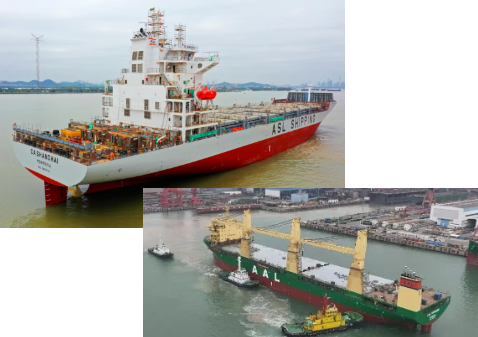 黃埔文沖同日完成2艘船舶出塢節(jié)點(diǎn),包括為亞海航運(yùn)批量建造的1600TEU系列支線箱船首制船、為AAL SHIPPING公司批量建造的32000DWT重吊船2號(hào)船,均為近年來(lái)黃埔文沖根據(jù)市場(chǎng)需求優(yōu)化的產(chǎn)品。