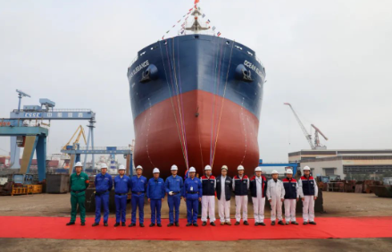 為華夏金融租賃建造的第6艘63500噸散貨船下水,這是2024年中船澄西本部的第2艘下水船。