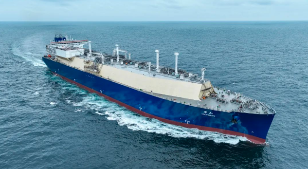 5月30日,中國船舶集團旗下滬東中華自主研發設計建造的17.4萬立方米大型液化天然氣(LNG)運輸船“華山”號較合同期提前7個月在長興島廠區命名交付。