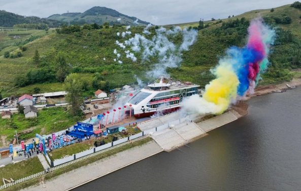 日前,中國船舶集團七一二所提供整船動力系統的新能源游覽船“天河一號”,在吉林省靖宇縣順利下水。“天河一號”下水現場。該船總長58米,定員乘客600人,搭載七一二所柴油發電機組。在經濟航速下,純電續航能力超過4個小時。