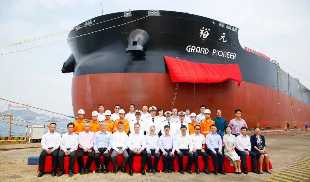 武船集團(tuán)北船重工為工銀租賃和招商輪船建造的32.5萬(wàn)噸礦砂船4號(hào)船“ORE CHONGQING”號(hào)命名暨交船儀式在3號(hào)碼頭舉行。