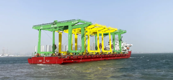 近日,武漢船機海西重機公司為天津港北疆港區(qū)C段智能化集裝箱碼頭一期工程承制的第五批4臺自動化軌道吊滾裝發(fā)往天津港。