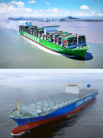 該船總長399.99米,型寬61.5米,型深33.2米,甲板面積相當于近4個標準足球場,最大堆箱層數可達25層,相當于22層樓的高度,可承載24萬多噸貨物,一次可裝載創紀錄的24116只標準集裝箱,是目前全球裝箱量最大的集裝箱船。