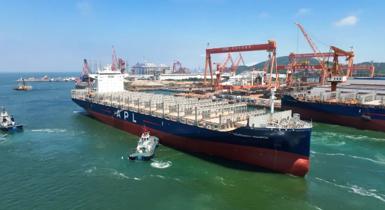 日前,中國(guó)船舶集團(tuán)旗下中船貿(mào)易聯(lián)合北海造船,為達(dá)飛輪船建造的第五艘5500TEU集裝箱船命名交付。